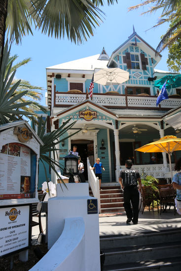 Mittags aßen wir Pizza bei Pizzahut, was uns sehr zugesagt hat, denn zu diesem Zeitpunkt hatten sie eine Aktion am laufen, diese hieß: Nimm zwei, zahl eine. Das taten wir dann auch. Nach einer kleinen Poolerfrischung machten wir uns wieder auf den Weg um uns das Hemmingway House anzuschauen. Der Eintritt war uns zu teuer, dennoch wollten wir den Leuchtturm und die Atmosphäre vor Ort spüren und begutachten. Direkt vorm Hemmingway House befand sich eine sehr schöne Reihenholzhaus Siedlung die irgendwie perfekt ins Bild passte. Wir sind weiter zum Hard Rock Café gelaufen, denn ich sammele diese T-shirts. Viele (darunter auch mein Freund) sagen das es nur Geldmacherei ist.. klar auf eine Art und Weise habt ihr auch recht. Denn ein T-shirt kostet im Schnitt zwischen 22-26€. Aber ich kann euch sagen wenn ich zuhause mal wieder eines dieser T-Shirts in die Fingerchen kriege, dann grinse ich übers ganze Gesicht, weil ich mich an unsere Urlaubszeit zurück erinnere und das ist mir dies Geld wert. Deshalb kaufe ich es in jeder Stadt, man mag es kaum glauben aber auch in Hamburg musste ich eins einpacken.
