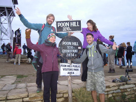 Der Wecker klingelt um 4.30...es ist kalt und dunkel. Bewaffnet mit Stirnlampe, Kappe und Kamera erstuermen wir den beruehmten Poon Hill. Der Aufstieg geht erstaunlich leicht ohne Gepaeck, nur 40 Minuten Marschzeit. Schon frueh erahnen wir den bewoelkten Himmel, hoffen jedoch auf ein schoenes Panorama.