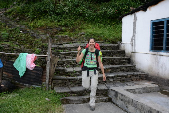 Der Weg hinunter nach Phedi ist steil, wir "geniessen" die letzten 500 Hoehenmeter und bejubeln euphorisch die letzte Stufe der Trekkingtour. Unsere Befuerchtung, keinen Bus zu erwischen, ist unnoetig. Wir schlagen ein Taxiangebot aus, weil 2500 Rupien fuer eine 20minuetige Fahrt sind zuviel. Und siehe da, 10 Minuten spaeter steigen wir in den Touristenbus (fuer 100 Rupien pro Person). Erschoepft, aber gluecklich erreichen wir Pokhara und beziehen unser Zimmer im Nepali Cottage Guesthouse und koennen gleich den Zimmerschluessel behalten.