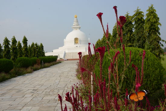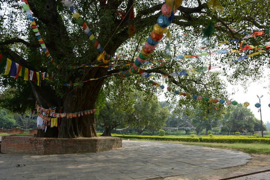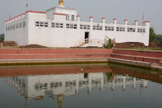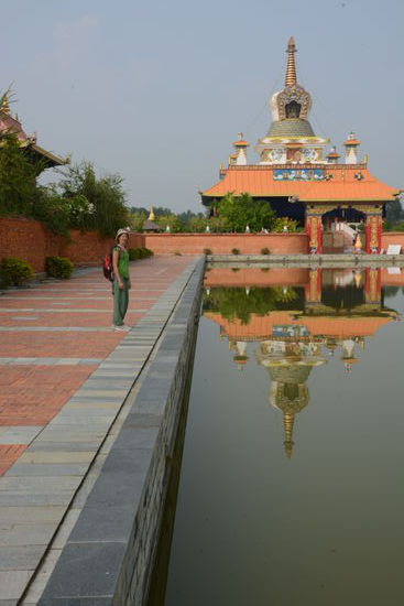 Wir finden schnell den Maya Devi-Tempel, der der Mutter Buddhas gewidmet ist. Daneben steht der riesige Baum, unter dem Buddha geboren worden sein soll. Es ist ein sehr friedlicher, stiller Ort, an dem wir gerne verweilen. Wir sehen die buddhistischen Moenche, wie sie ihre Gebete sprechen und beobachten die lustigen Streifenhoernchen und Wasserschildkroeten im Teich. Wir fuehlen uns sehr wohl und die gestrigen Strapazen sind schnell vergessen.