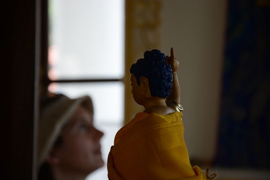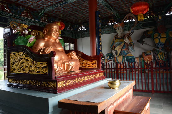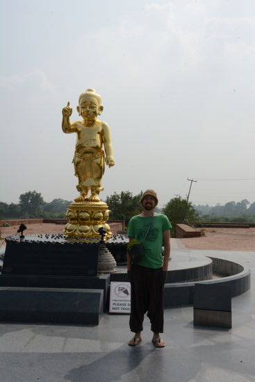 Auf Empfehlung lassen wir uns von einem Rikschafahrer zu den einzelnen Tempeln radeln. Wir sind beeindruckt von der Leistung des Jungen, er faehrt uns bei bruetender Hitze ueber Stock und Stein zu allen geoeffneten Tempeln. Insgesamt gaebe es 41 Parzellen, wo Laender ihren eigenen buddhistischen Tempel bauen koennen, wobei nicht alle Parzellen fertiggestellt oder noch unbebaut sind. Wir haben viel ueber die Geschichte des Buddhismus gelernt und alle Tempel sind sehenswert. Hervorheben moechten wir die deutsche Tempelanlage mit schoenen, detailgetreuen Malereien und einer sehr gepflegten Aussenanlage. Wir fuehlen uns wie an einer Expo und sind froh, um unseren Fuehrer und Fahrer. Alleine haetten wir nicht alle Tempel gefunden.