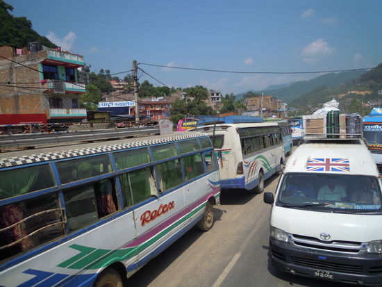 Aufgrund Differenzen zwischen Nepal und Indien, hat Indien die Benzinzufuhr gestoppt. Die Nepali gehen damit locker um, obwohl das Ende der Benzinknappheit nicht absehbar ist. Autos und Motorraeder der Einheimischen bleiben groesstenteils stehen. Vor allem bei den Tankstellen zwischen Kathmandu und Pokhara steht Fahrzeug an Fahrzeug. Man versichert uns, dass das fuer Touristen kein Problem sein wird, denn diese Busse verkehren nach wie vor. Es hat aber deutlich weniger Verkehr und folglich auch weniger Taxis mit genuegend Benzinvorrat zur Verfuegung. Auch der Busverkehr der Einheimischen besteht noch, aber reduziert. Dies bedeutet zusammenruecken