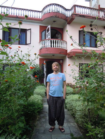 Auf der Busfahrt lernen wir Hemant kennen, der auch ein Guesthouse fuehrt und prompt hat er ein freies Zimmer fuer uns. Das wird noch schnell geputzt und wir koennen einziehen. Das Nepali Cottage Guesthouse ist sehr freundlich und familiaer gefuehrt und wir kommen schnell mit den Besitzern ins Gespraech. Die Zimmer sind einfach, aber mit eigenem Badezimmer und perfekt fuer unseren Aufenthalt. Auch die Waesche machen sie, dies uebrigens sauberer als wir zuhause und allfaelliges Gepaeck darf zwischengelagert werden.