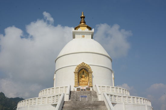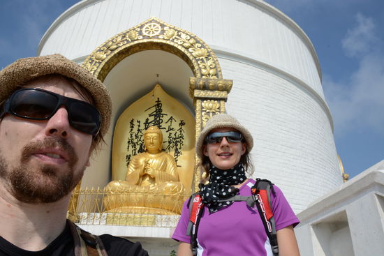Die World Peace Stupa ist sehr eindruecklich, mit ihren strahlend weissen Mauern und dem gepflegten Garten. Die Schuhe muessen ausgezogen werden und selbstverstaendlich darf sie nur ueber die linke Seite umrundet werden.