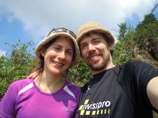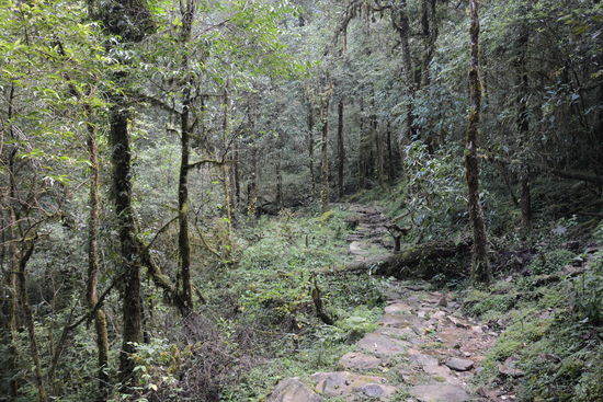 Mit der von Hand gezeichneten Karte Yogens machen wir uns auf den Weg. Schnell sind wir in tropischen Gefilden und es wird richtig nass und glitschig. Zu der Zeit wimmelt es hier von Blutegeln (was uns niemand gesagt hat und wir auch nirgends gelesen haben ). Stehen bleiben liegt nicht drin. So joggen wir vollbeladen durch den Wald und hoeren und sehen nichts. Nur ab und zu kurz die Blutegel wegspicken und weiter gehts. Das Ende dieser 3 Stunden Tortur ist nicht abzusehen... Zum Glueck finden wir den Weg relativ gut, wegen der erst kuerzlich angebrachten Markierungen. Ein Glueck!