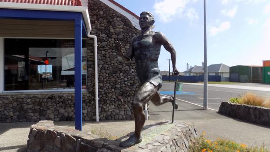 in Opurako wurde dem grössten Sohn der Stadt Peter Snell, 1960 3-facher Olympia Sieger, dieses Denkmal gesetzt,