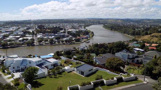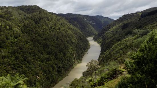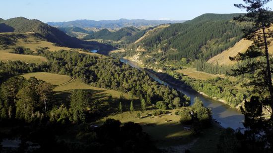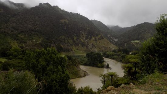 der jedoch zur Zeit wegen Renovierungsarbeiten geschlossen ist. Da der SP in Whanganui nicht so ganz unseren Erwartungen entspricht, planen wir um und fahren auf der (Whanganui-) River Road Richtung Norden, blicken vom Aramoana Viewpoint mal runter auf den Fluss