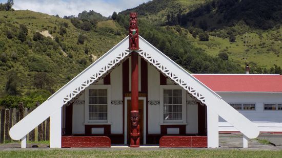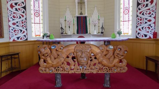 Am nächsten Morgen fahren wir weiter Richtung Norden, besichtigen die Marae (Maori Meeting House) in Korinti (Korinth),