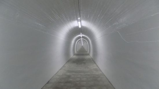 Damit das Wohngebiet da droben besser erschlossen werden kann, wurde bereits 1919 ein 230m langer Tunnel (Stollen) in den Berg geschlagen,