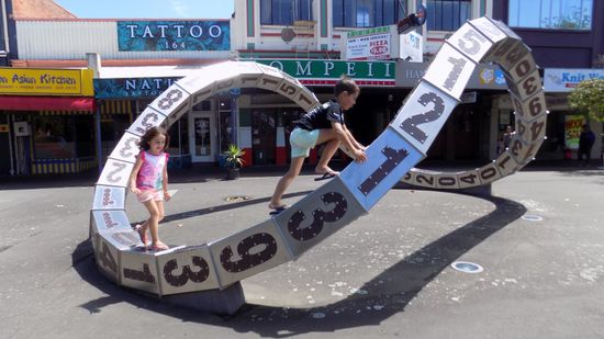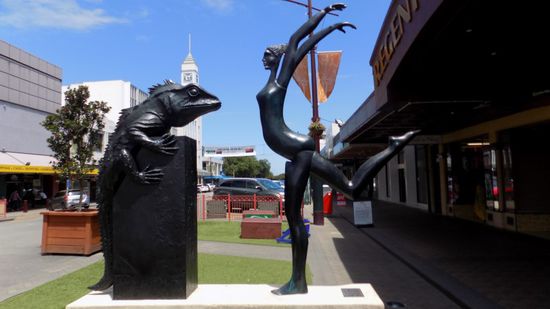 Nachdem uns schon gestern Abend die zahlreichen Skulpturen in Palmerston North aufgefallen sind, kehren wir in diese Stadt zurück, entdecken in der an sich schon auffallenden Liberary