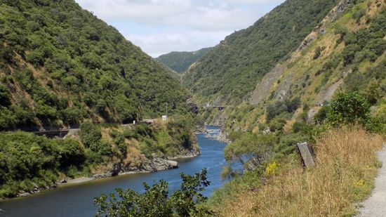 eine der wenigen Stellen auf der Erde, wo sich ein Fluss seinen Weg durch eine Wasserscheide gegraben hat, Man(n) stelle sich vor, der Rhein biegt bei Strassburg nach rechts ab, bohrt sich durch den Nordschwarzwald und vereinigt sich dann mit der Donau,… geologisch interessant, als Schlucht selbst weniger aufregend. In Mangatainoka versuchen wir der TUI Brauerei einen Besuch abzustatten,