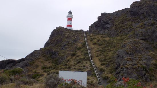 und dann geht es weiter nach Martinborough, mitten im Weinanbaugebiet gelegen. Ein zentralem Verkauf der Produkte der umliegenden Winzer ermöglicht einen Vorort-Vergleich ohne die einzelnen Kellereien aufsuchen zu müssen. Bei Preisen von NZD 25 aufwärts für Weissweine, Rotweine nach oben preislich verzichten wir jedoch auf einen grösseren Einkauf und fahren weiter zum Cape Palliser Lighthouse, dem südlichsten Punkt der Nordinsel. Die 78m hoch zum 18m hohen Leuchtturm legen wir auf 254 Stufen zurück,