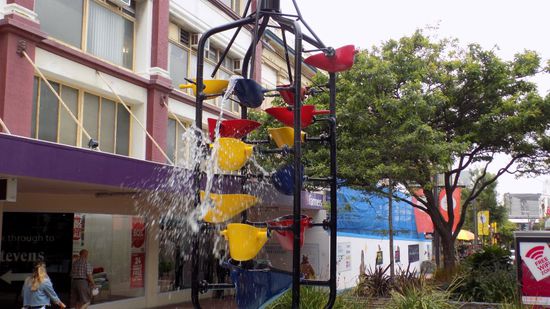 Wir gehen zurück ins Parlament, machen eine in unseren Augen ‚wenig informative‘ Tour, deren Höhepunkt zumindest für uns darin bestand; welcher Aufwand hier getrieben wird, um solche doch schon fast 100 Jahre alte Gebäude erdbebensicher zu machen. Wir streifen danach durch die Haupt-Einkaufs- und Party- Strassen der Stadt, gehen am Cable Car, einer Standseilbahn vorbei, (NZD 4 einfach), schauen in der Cuba Street eine Weile diesen Wasserspielen zu