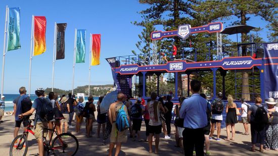Im direkt anschliessenden Manly Beach findet zur Zeit eine der australischen Surfer ??-Meisterschaften statt, von der wir aber wegen Ebbe zur Zeit nichts mitbekommen, dafür bietet dieser Fitness Wettbewerb ausreichende Unterhaltung.