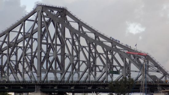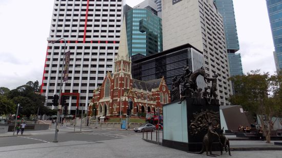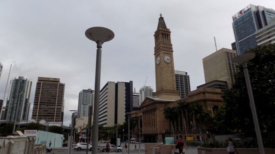 und da die Brücke wesentlich kleiner ist als die Sydney Harbour Bridge, werden hier auch nur bescheidene(AUD=99,- pP) verlangt. Wir gehen Montags nochmals in die Innenstadt, holen uns auf der Bank einen Bank Cheque zur Autobezahlung ab, gehen in die City Hall und müssen fast gar nicht darauf warten, dass uns ein Führer in einer maximal 8 Personen fassenden Kleingruppe hoch auf den Uhrturm bringt, damit wir von hoch droben auf den King George Square,