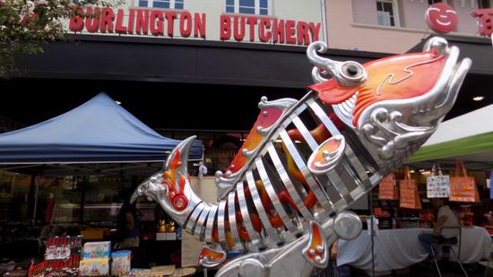 finden dort aber selbst am Sonntag Morgen kein Lokal das Dim Sum serviert, dafür dieses Kunstwerk von einem Fisch,