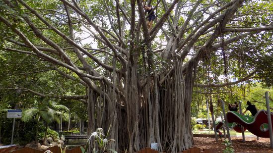 bevor wir über eine der zahlreichen Brücken auf die Brisbane South Bank gehen. Dort ein Banyan Tree mit seinen mächtigen Luftwurzeln,