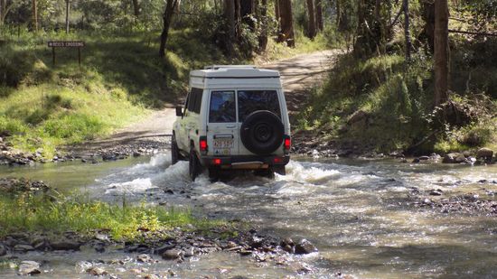 Die erste Hälfte der Woche verbringen wir mit weiteren Einkäufen, bestellen Felgen und Reifen, die am 21.3. montiert werden sollen, bestellen unsere Anbau-Verschönerungsteile bei ARB, die leider erst nach Ostern am 31.3. / 1.4. montiert werden können und fahren dann wieder raus aufs Land, auf einen wunderschönen SP in Kilcoy, der sogar warme Duschen besitzt. Hier basteln wir weiter an unserem Auto rum, bauen die letzten 12V Steckdosen und LED Innenleuchten ein, montieren noch einen 12V->220V Spannungswandler, spannen zum ersten Mal unser Sonnenschutz-Vorzelt auf,