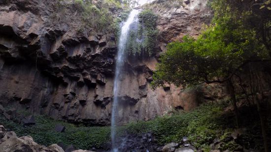 wo sich der Fluss nach einem kleinen Wasserfall über Basalt seinen Weg durch eine weicherer Felsformation gebohrt hat. Die kleinen Becken oberhalb vom Wasserfall werden von einigen Jugendlichen (verbotenerweise) als Wasch?-becken benutzt,