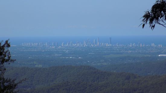 Wir fahren zum östlichen Teil dieses NP in die Springbrook Plateau Section, geniessen die Aussicht auf die Skyline an der Gold Coast