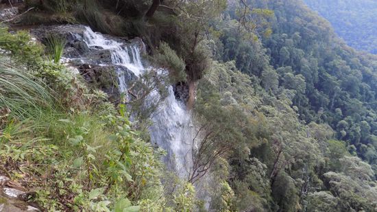 Vom Canyon Lookout blicken wir rüber auf die Goomoolahra Falls,