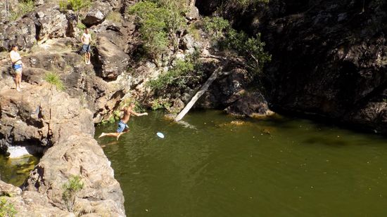 Sonntages fahren wir auf ein paar 4WD Tracks durch den MT. Mee NP, sehen den Jugendlichen bei ihren Wasserspielen im für unseren Geschmack recht veralgten Rocky Hole (Wasserloch) zu