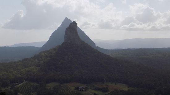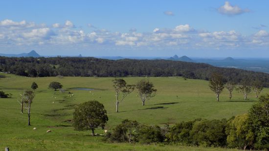 und können noch einem ersten Blick auf die Glass House Mountains werfen,