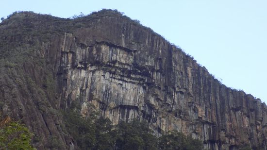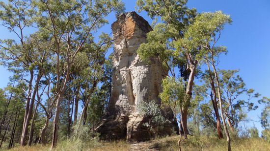 Eigentlich hätte man sich den doch relativ langen Weg hierher ersparen können. Wir übernachten auf dem Busch Camp CP im Park, bevor es am nächsten Morgen erst auf Staubpisten, dann auf Teerstrassen nach Springsure, zurück in die Zivilisation weitergeht. Die Kleinstadt Springsure bietet eigentlich fast nichts Sehenswertes, eine Picknick Area mit Campingverbot, ein paar alte Ochsenkarren erinnern an die Gründertage und dem Marienfelsen, an dem einst einer angeblich eine ‚Erscheinung‘ hatte, die auch heute noch nach ausreichend Rumgenuss wiedererlebt werden kann??!!??.