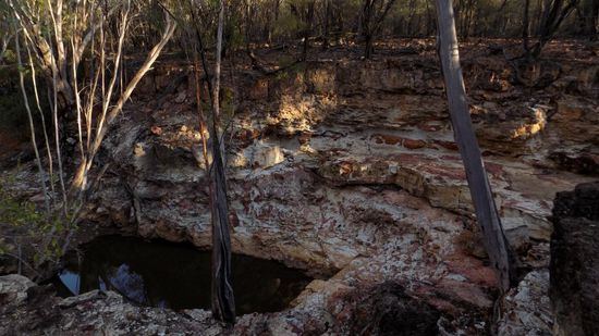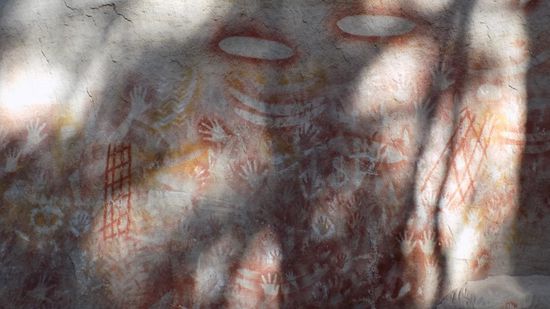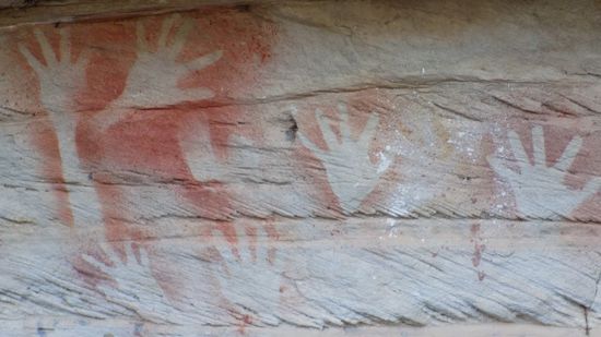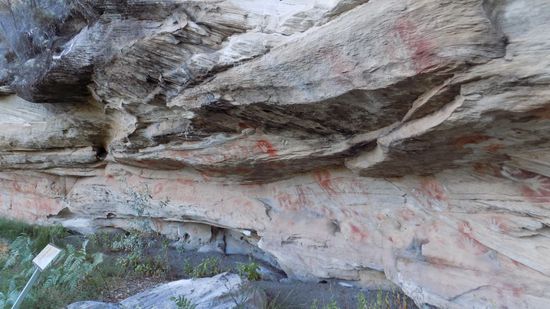 eine uralte Aboriginal Begräbnisstätte mit genau so alten Felsmalereien
