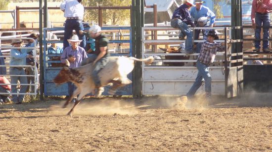 Neben dem Reiten auf Wildpferden mit und ohne Sattel war natürlich das Bullriding der absolute Höhepunkt des Tags,