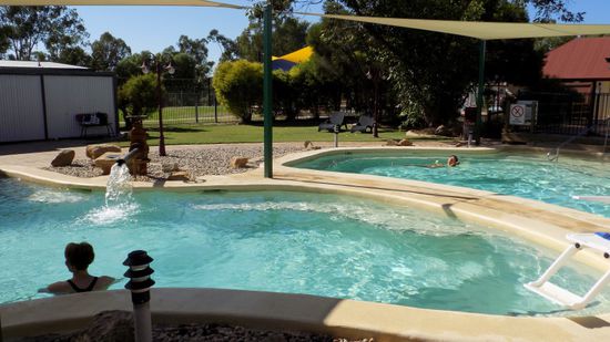 Es ist Sonntag, um uns von den Anstrengungen des gestrigen Tages zu erholen, besuchen wir die Great Artesian Spa (AUD 8pP),