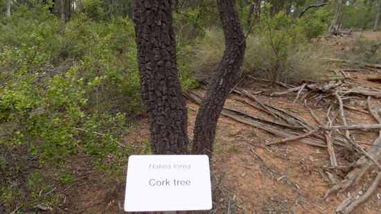 südlich von Morven im Tregole NP Ooline Forest, ein 2,1km langen botanischer Rundweg mit wohlbeschrifteten Bäumen, wie dem Cork Tree