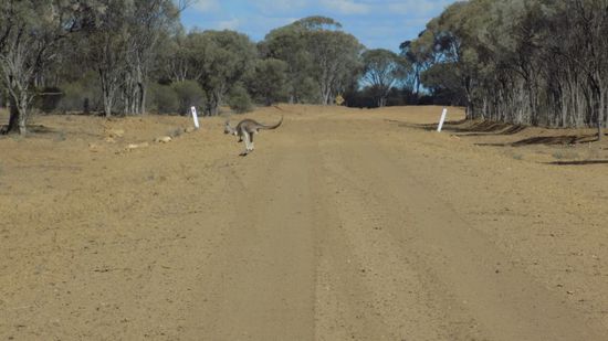 und Wallabys auf der Strasse,
