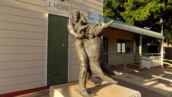 der an die Zeiten der intensiven Bewirtschaftung dieser Gegend erinnert. In Blackall, der nächsten grösseren Ansiedlung in dieser Gegend (800 Ew.), ein Denkmal für Jack Howe