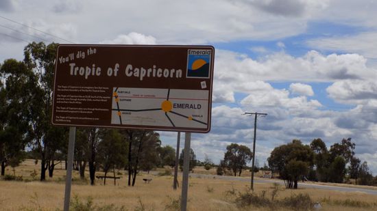 den Wendekreis des Steinbocks und sind damit zum ersten Mal auf dieser Reise in den Tropen.