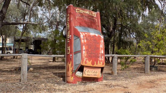 Die nächste Ortschaft Rubyvale auch so eine Saphirsucherstadt beeindruckt vor allem durch seine Kunstwerke,