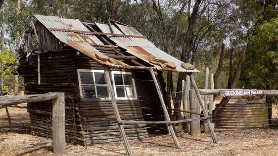 ein Relikt aus der Weltwirtschaftskriese der 30er Jahre, als flachgeklopft Heizölbehälter als Baumaterial verwendet wurden. Ein Einkaufstopp in Charleville