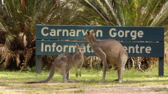 und dann dieses Känguru-Begrüssungskomitee direkt am Info Center.