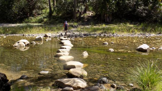 Auf dem 11km langen Weg bis zum begehbaren End der Schlucht müssen wir 17 Mal den Fluss überqueren, mal auf solch gepflegten Furten,