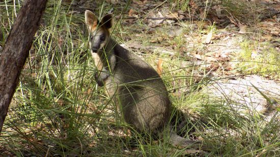 aber viel öfter ist Steine-Hüpfen angesagt. Wallabys sind unsere Begleiter, mal naseweiss,