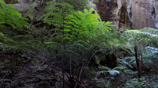 einer der wenigen Plätze in Queensland an denen noch die Königsfarne, Überbleibsel aus der Zeit der Dinosaurier, mit ihren bis zu 5m langen Blättern anzutreffen sind, das Amphitheatre