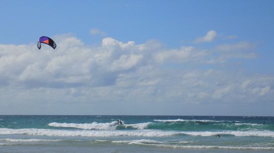 aber zur Zeit des Sonnenaufgang so um 5:30 war die Grenze zwischen Himmel und Meer von einer handbreit hohen Nebel?- Wolkenschicht bedeckt. Also wieder mal nix mit Traum-Sonnenaufgang. Wir stehen trotzdem relative früh auf, sehen erst mal den Brandungs-Kite-Surfern zu