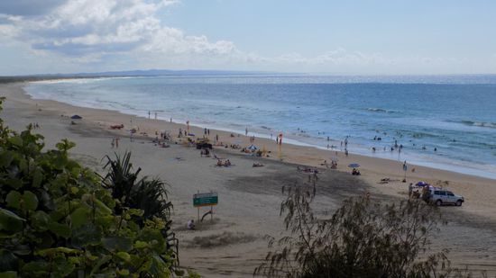 Am nächsten Morgen noch etwas mehr Hausarbeit und dann geht es weiter nach Noosa Heads, erst zum Metzger, dann zur ‚Fleischbeschau‘ an den Main Beach, der bei diesen Temperaturen