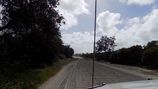Die Flut ist noch nicht genug abgelaufen, wir müssen anstelle der Strandpiste die Hook Point Inland Road nehmen, eine fürchterliche Wellblech – Rüttelpiste