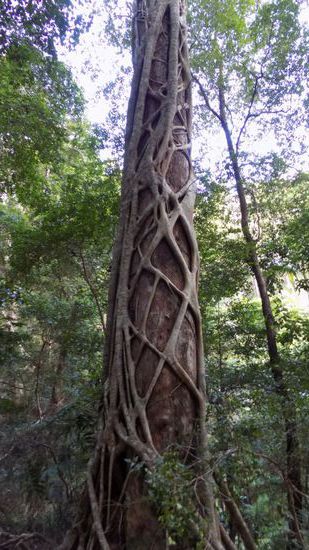 vorbei an solchen, von Lianen dicht umschlungenen Bäumen