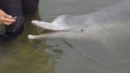 dort wird ihnen nochmals erklärt, wie der Futterfisch Dolphinverzehrgerecht gehalten werden muss, damit die Fischübergabe auch sicher, unfallfrei geschieht