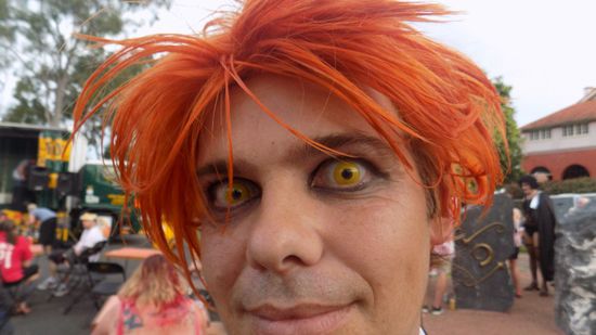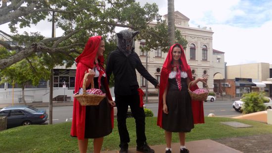so wie der Wolf mit seinen Rotkäppchens, die versuchen den AUD 3.000 Kostümierungspreis zu gewinnen.