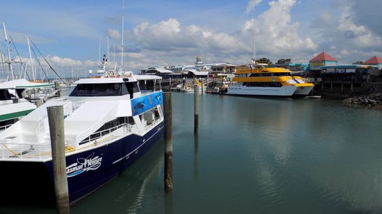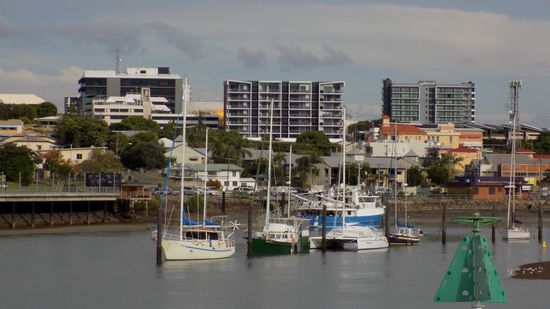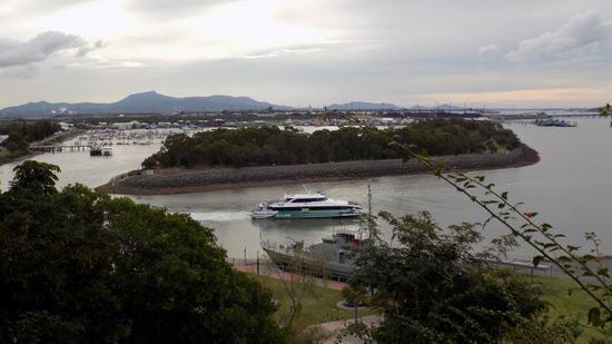 das 25% des in Queensland produzierten Stroms liefert. Im malerisch an der (Sport)- Hafeneinfahrt gelegenen Spinnaker Park ein Blick auf die Marina,