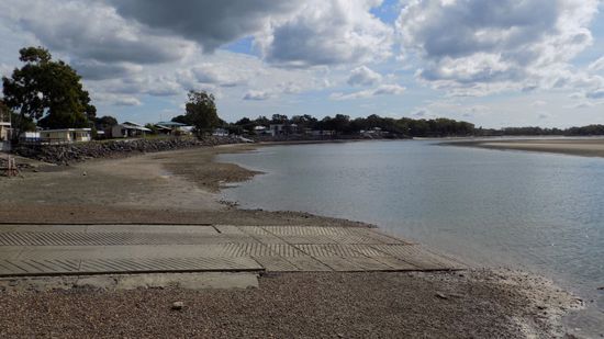 Im Toogoom an der Boat Ramp ein Blick auf das hier bei Ebbe doch recht trockene Meer,