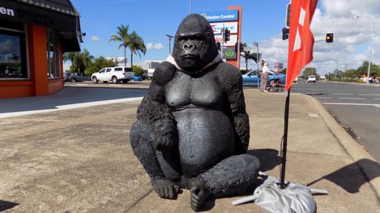 In der Electra Street werden wir erst von diesem Riesenaffen begrüsst
